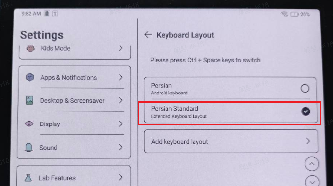 In firmware v3.3.2, the Onyx Keyboard supports the Persian language. In this case, you could update the firmware on your device via Settings > Firmware Update. After that, you will be able to switch to the Persian on the Onyx keyboard.