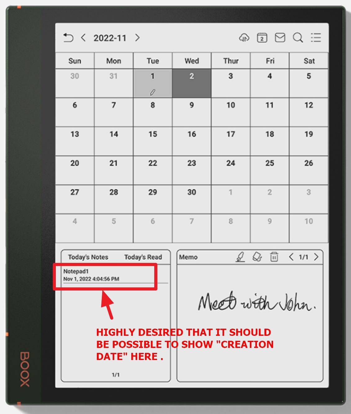 My only reason for buying Note Air " was for writing Minutes of Meetings, writing during meetings. So that weeks later when I see in my calendar I had a meeting, I can see what notes I had that day. But if, for any reason, I have opened and made changes to the note, renamed it , the date will be updated, and no longer have same date as the meeting. Rendering the date function for notes useless.