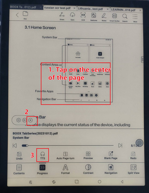 When you pause the TTS, it will start from where you paused. If you wish the TTS to start from where you reading, you may need to close the TTS and restart the TTS as the steps below: