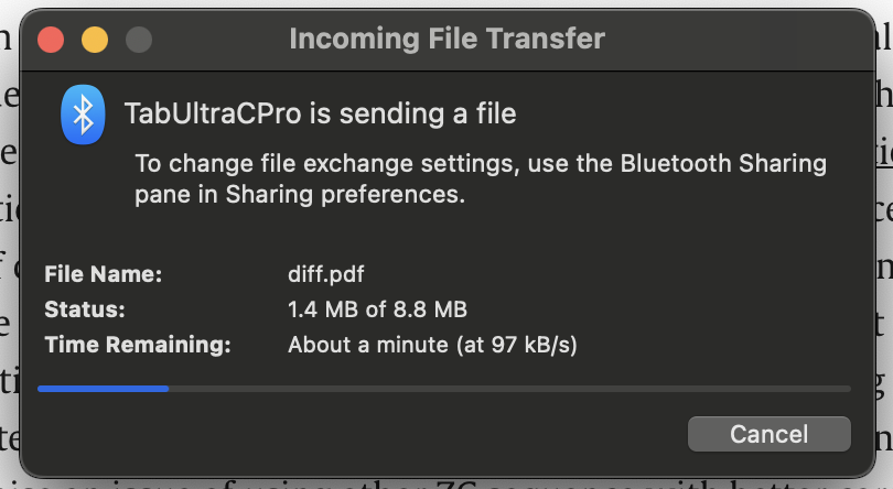 Bluethoot 5.0 really slow when transfering files to/from Boox Tab Ultra C Pro and Macbook Pro 2021