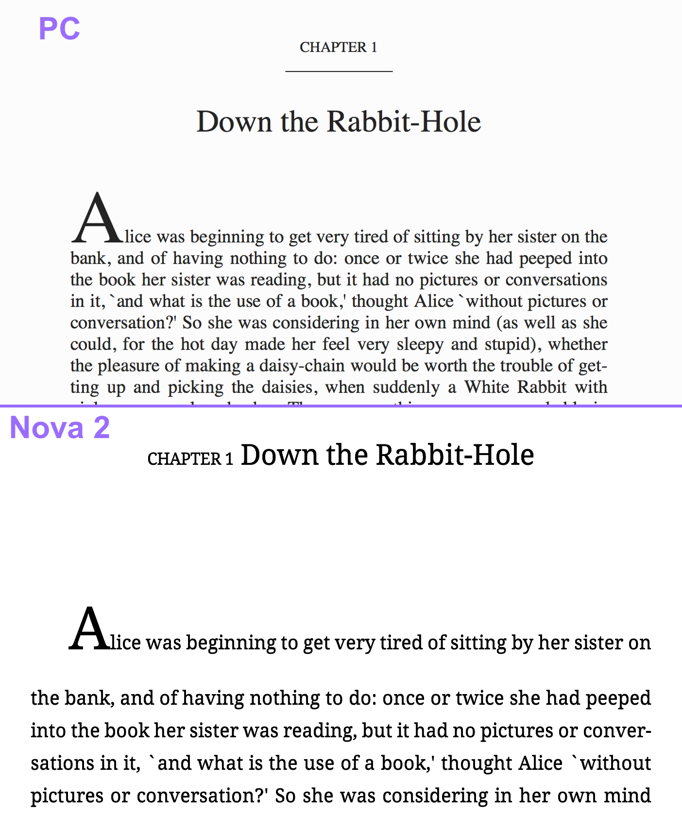 On my Nova2 running FW 2.3 (6d59f32), the rendering of ePub files with the built-in reader app appears buggy.