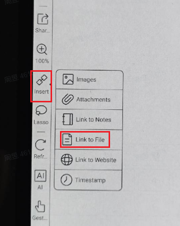 Since firmware 4.1, the Notes app supports inserting a hyperlink to a page of a PDF. You can follow the steps below to insert a hyperlink to a page of a PDF.