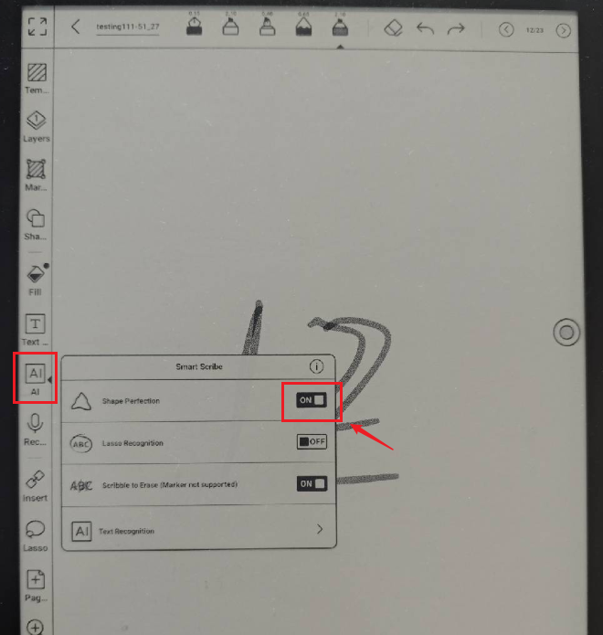It’s on the Tab X since the latest update. Shape perfection became completely unreliable. Just test it. Wrote a text and try to create a box around it. It will not recognize it, does partially, or nothing at all.