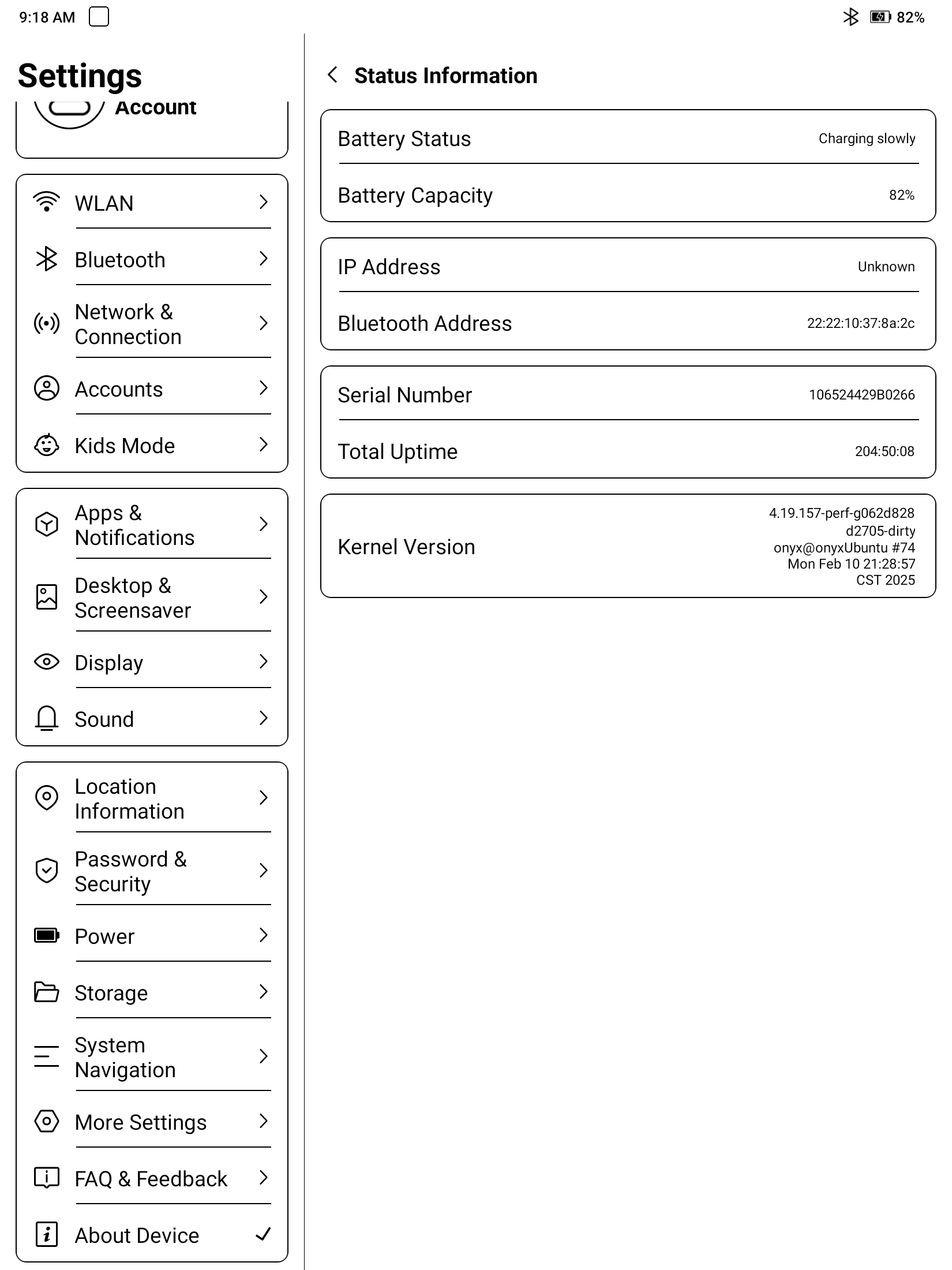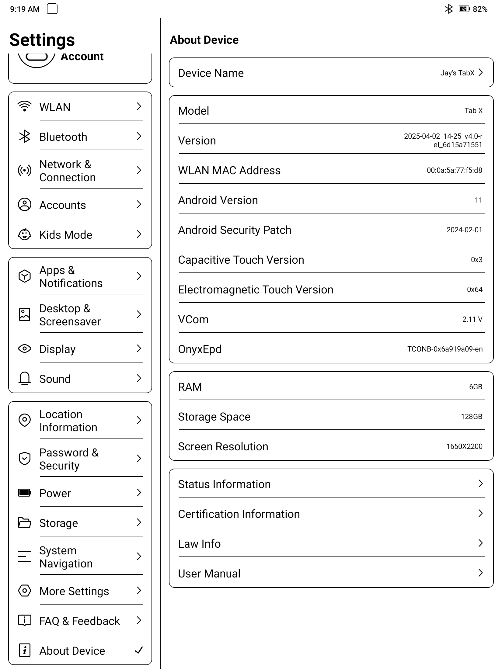 Following is the information from my tablet, but be aware I also have a TAB Mini C that exhibits the exact same issue.