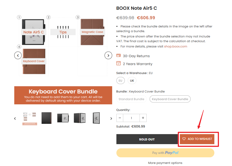 We apologize for the inconvenience. In this case, we suggest using another browser or device to open the product page of Note Air 5 C. Then, please check if the "Add to wishlist" button shows. Many thanks for your understanding.0 -