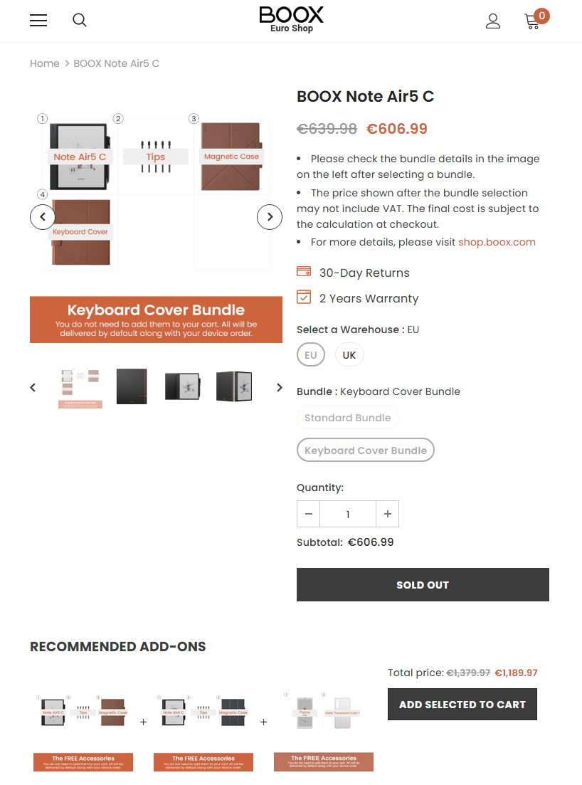 What is the availability of note air 5c bundle with the magnetic keyboard in EU? Currently it shows "sold out" so I'm not sure if I should wait or order the bundle without the keyboard.