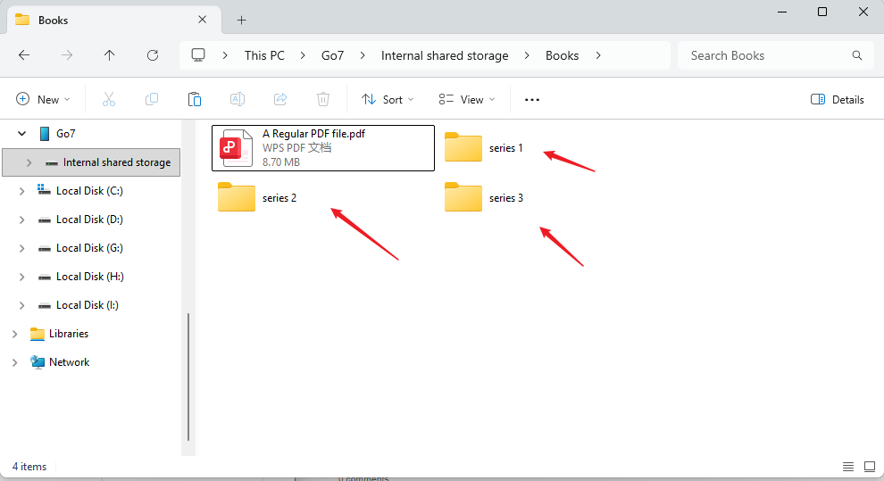 After that, you can switch the Library mode to directory mode. Then, you can see your books organized in series.