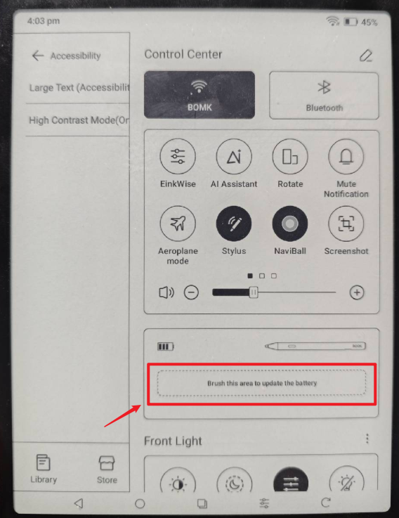 When charging the pen, if the battery is between 0-99%, it indicates a red light. When the battery is 100%, it indicates a green light.To check the battery of the stylus, you could swipe down from the top right of the screen to bring up the Control Center > tap on the "Brush this area to update the battery".