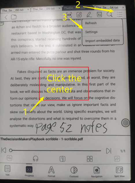 I don't think I have a single way to open the menu anymore. I can't slide to the side to open the toolbar, and I can't tap in the center to open the menu, so I'm just stuck on the page and the only thing I can do is draw, and I can't erase anything.