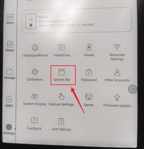 1) Please go to the settings page and click "System Bar"