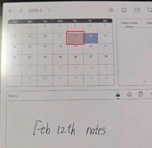We apologize for the inconvenience. In this case, we are wondering if you mean the notes on calander memo disappear on the next day you turn on the device. If this is the case, it is normal.If you made a note in Calendar Memo on Feb 12th, the notes will only appear when you select Feb 12th. If you select 13th, the notes on 12th will be hidden.