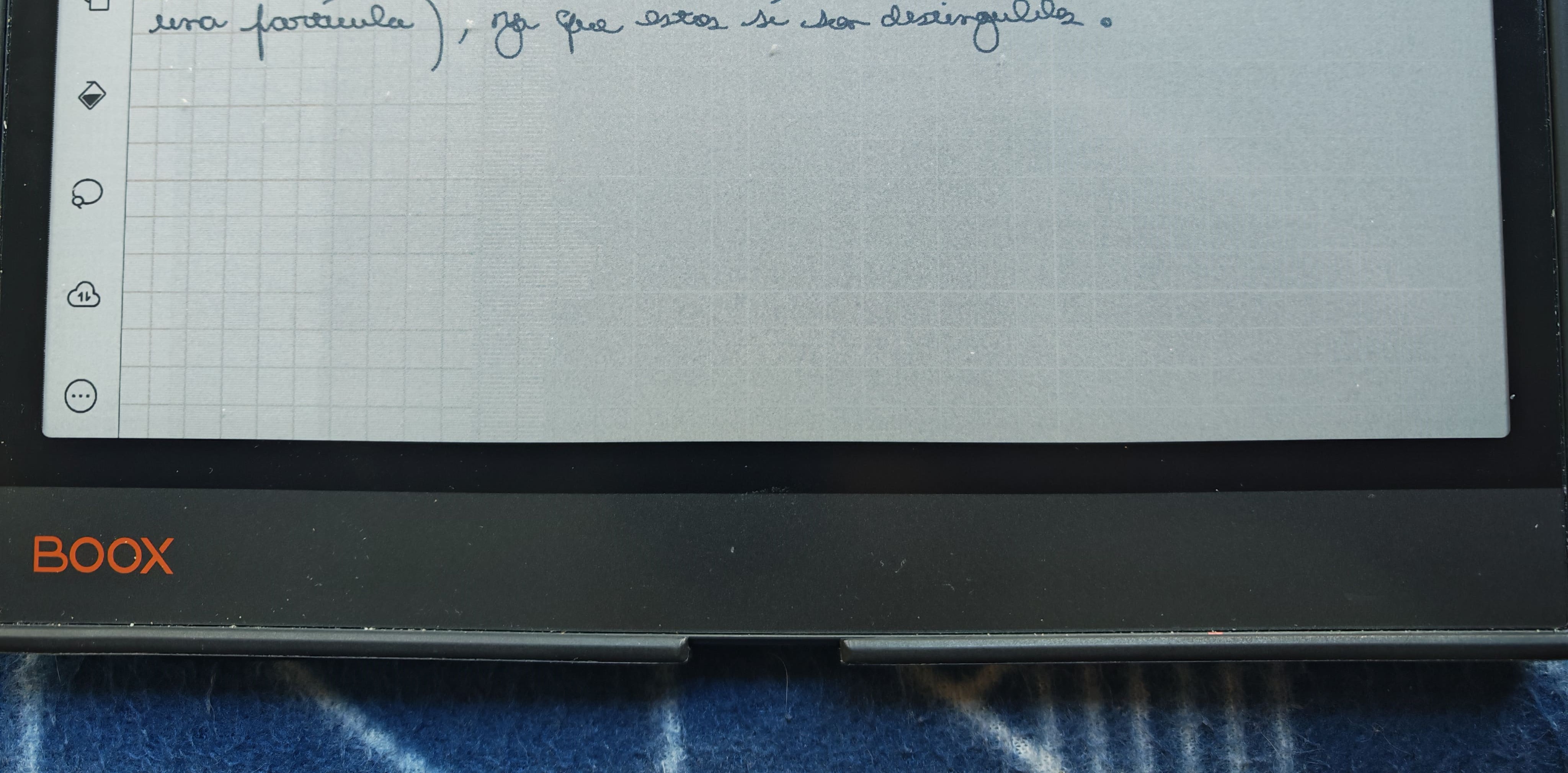 I'm using a Boox Note Air 3 C in the 2025-12-24_18-04_4.1.1-rel_1224_16d194534 version and I'm having an issue with the Notes app. I use a custom template in PDF format consisting of a graph paper that I made in Inkscape (I tried to attach it as a shared file, but it is not possible). The problem is that, when I stop moving through the pages and start writing, after some time without moving, the screen refreshes and the template doesn't render properly, leaving the right side of the screen in gray so disturbing the visibility of the lines of the page. I share a photo of the problem taken with my phone with you. Look carefully at the differences between the left side (the one closer to the toolbar) and the right side. The one that is correctly rendered is the left side, and, when moving to the right in the image, the problems start to appear. I hope there is some way to solve this problem. I'll be waiting for your reply.