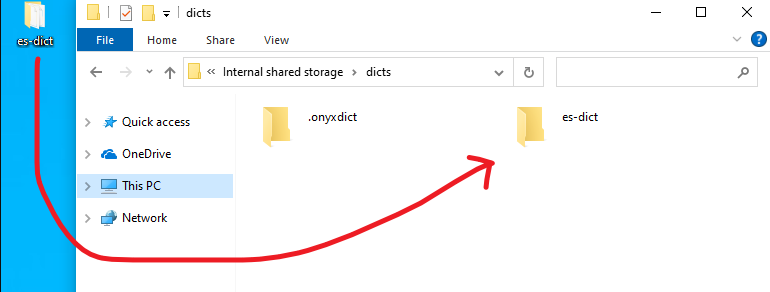 2) Connect your device with your PC and put the unzipped file to the file directory "Internal shared storage\dicts"