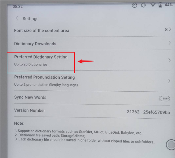 Then, please connect your BOOX device to the computer via a USB cable and transfer the dictionary folder to the dicts folder.