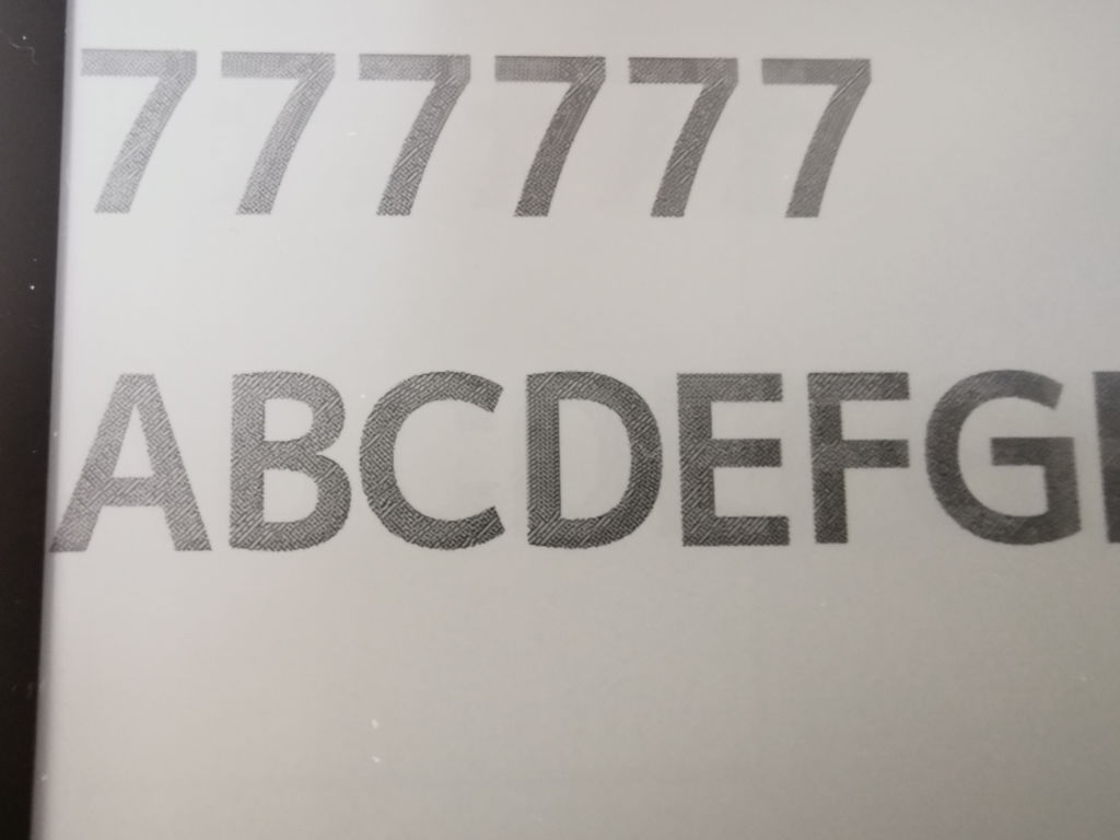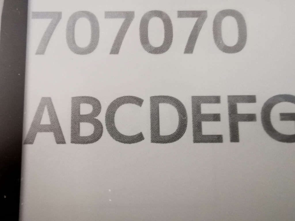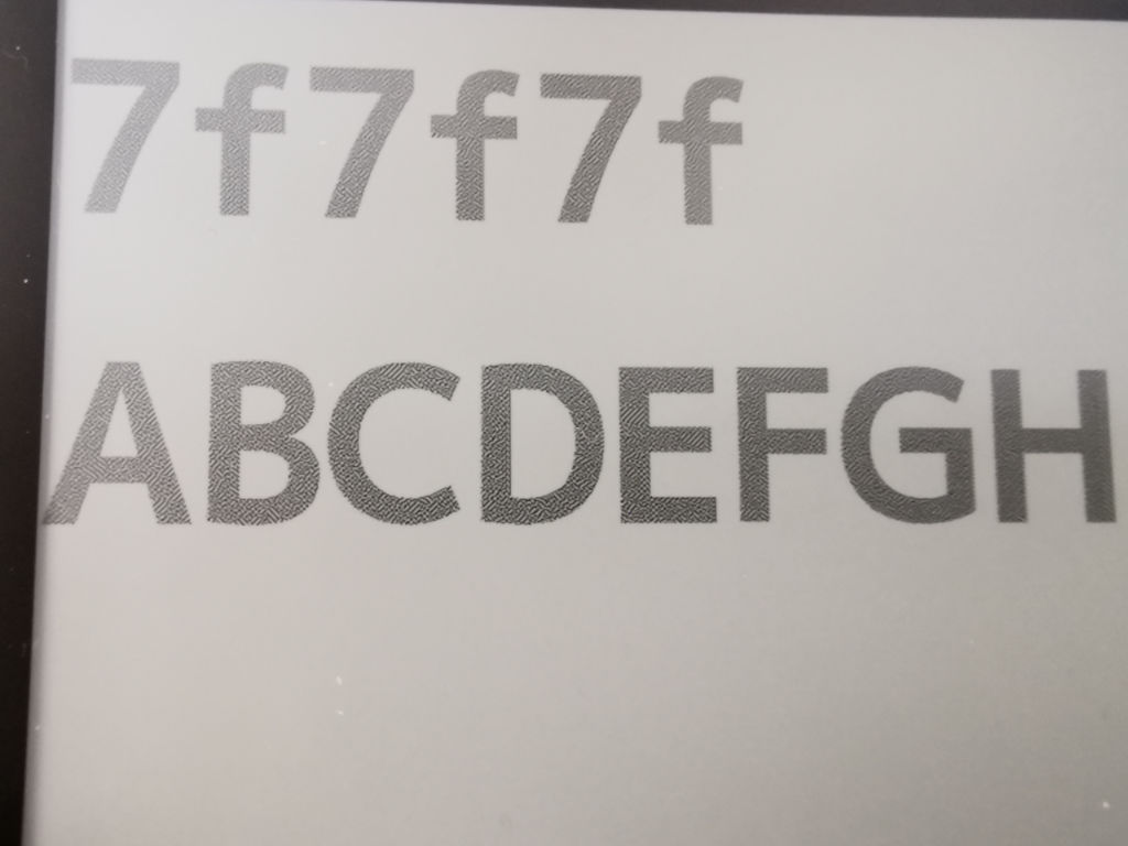 When we tested on older, lower resolution 16-level raw e-paper we were able to display gray beautifully. It is hard to tell in this picture, but the background of the time is not white, but the next level of gray. The background color at the bottom of this image is 100% white. Different from the example above, it is not 50%, but it is beautifully displayed.