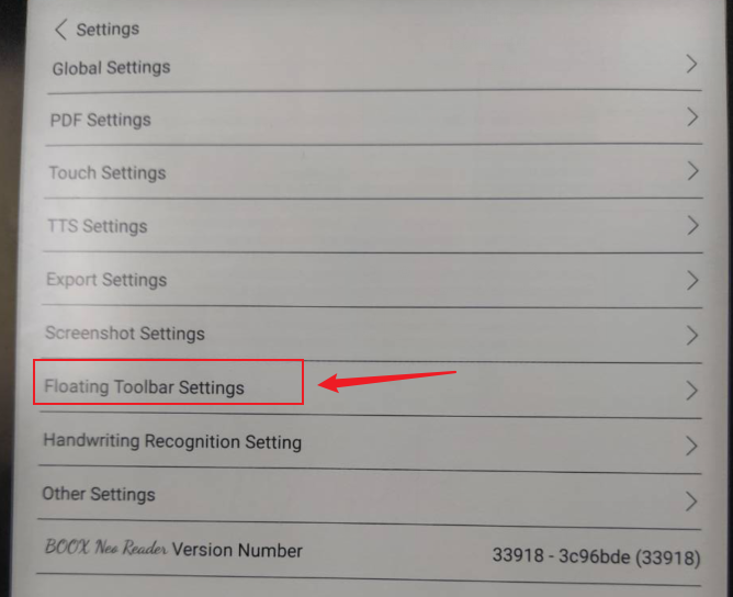 2) Click"Floating Toolbar Settings"