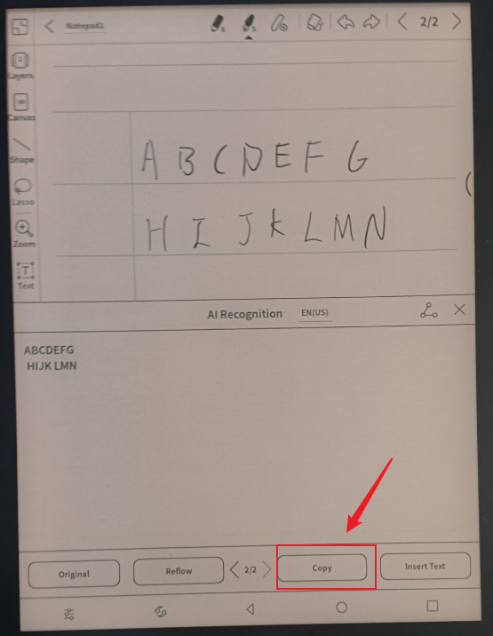 I have a follow-up question on the function of AI recognition. After I copy the text from the recognition, it does not show in the note on send2boox or the version I downloaded to my laptop. Why is it and how can I make sure it is saved and displayed in the cloud? Thanks