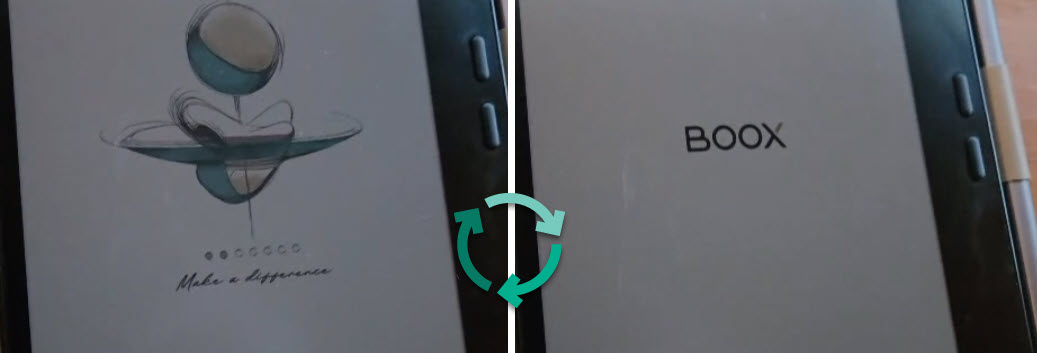 When powering on the device, the BOOX boot screen appears and begins loading. As the loading animation progresses, the device consistently resets when it reaches the third dot on the boot screen. The device then restarts and repeats this process indefinitely. It never reaches the home screen or completes startup.